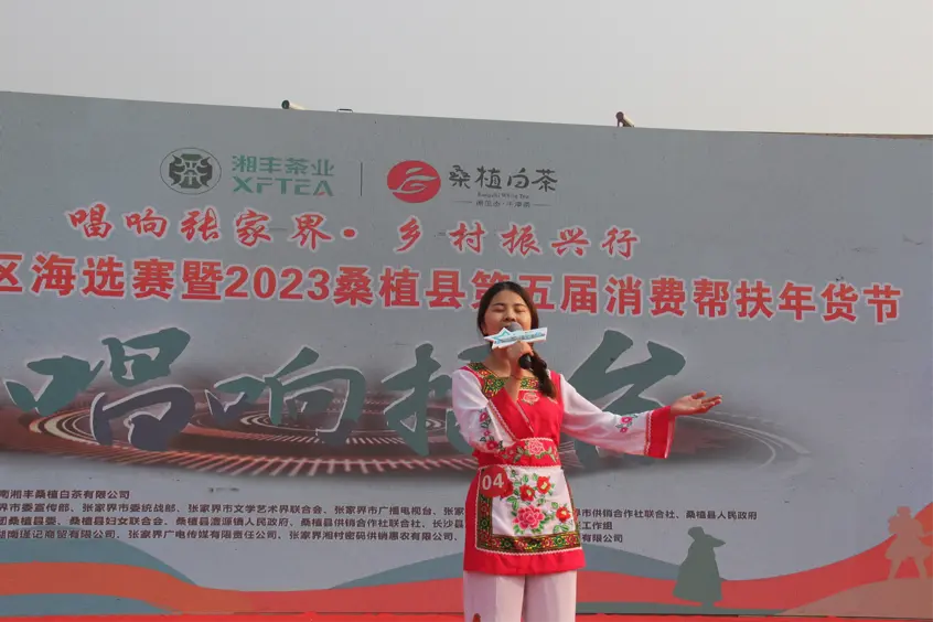 2023 年 1 月 10 日,湘豐茶業·桑植白茶《唱響擂臺》張家界賽區海選賽暨 2023 桑植縣第五屆消費幫扶年貨節活動在桑植縣民歌廣場隆重舉行。《唱響擂臺》是中國首檔定位音樂推介幸福的鄉村綜藝秀,本次活動由桑植縣 23個鄉鎮(每個鄉鎮推舉一位民間歌手代表)采取線下場地擂臺賽的方式,現場專業評委評判,呈現歌曲產品雙向賦能、推薦家鄉好物,打造幸福鄉村主題歌曲。讓桑植的歌聲越過大山,讓更多人聽到!