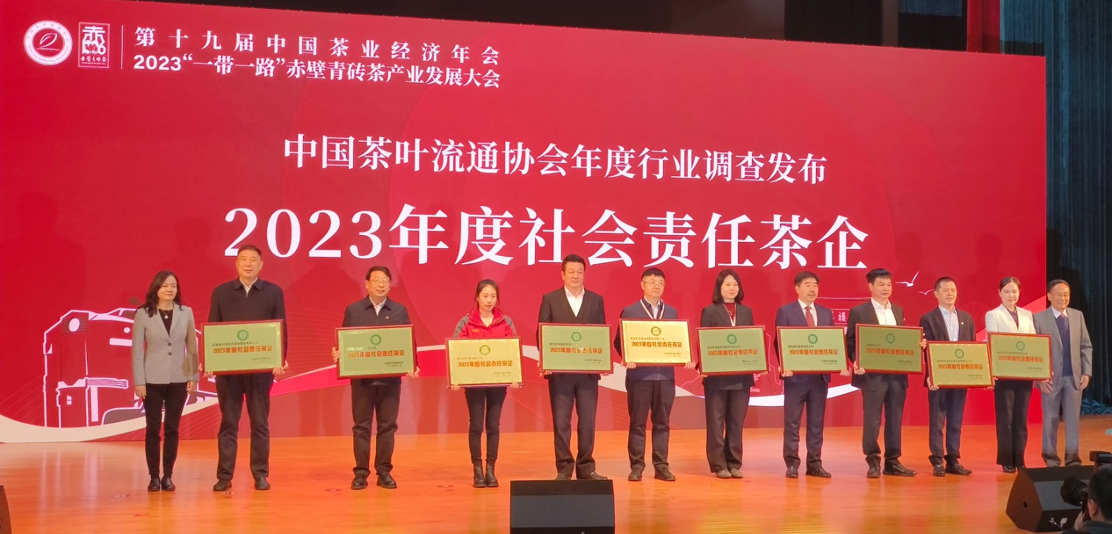 11月18日,第十九屆中國茶業(yè)經(jīng)濟(jì)年會暨2023“一帶一路”赤壁青磚茶產(chǎn)業(yè)發(fā)展大會在湖北省赤壁市舉行。湘豐茶業(yè)集團(tuán)有限公司(以下簡稱“湘豐茶業(yè)集團(tuán)”)榮獲“2023年度社會責(zé)任茶企”、“2023年度重點茶企”稱號!湘豐茶業(yè)集團(tuán)董事 CEO李中欽博士受邀出席大會,代表公司登臺領(lǐng)獎。
