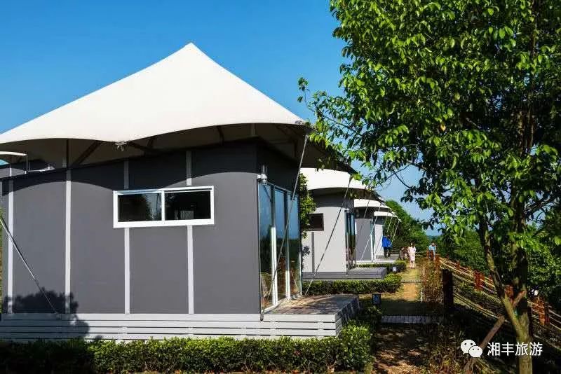 湘豐帳篷酒店位于長沙縣金井鎮湘豐茶業莊園內,通體白色,零星鑲嵌于綠色的茶海之中仿佛即將遠航的帆船,非常雅致、生態,真正做到了觀星賞湖品茶香的美好旅游體驗。每個帳篷都有其獨立的污水循環處理系統,不會對茶園生態產生負面影響,酒店內住宿洗浴設備一應俱全,自對外開放以來受到游客們的熱捧。